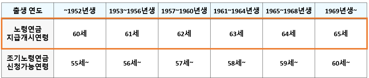 1. 국민연금의 수령 나이는 태어난 해에 따라 달라집니다.