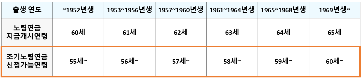 조기수령 제도는 본인의 신청을 통해 일반적인 지급 연령 보다 최대 5년 일찍 연금을 받을 수 있는 제도